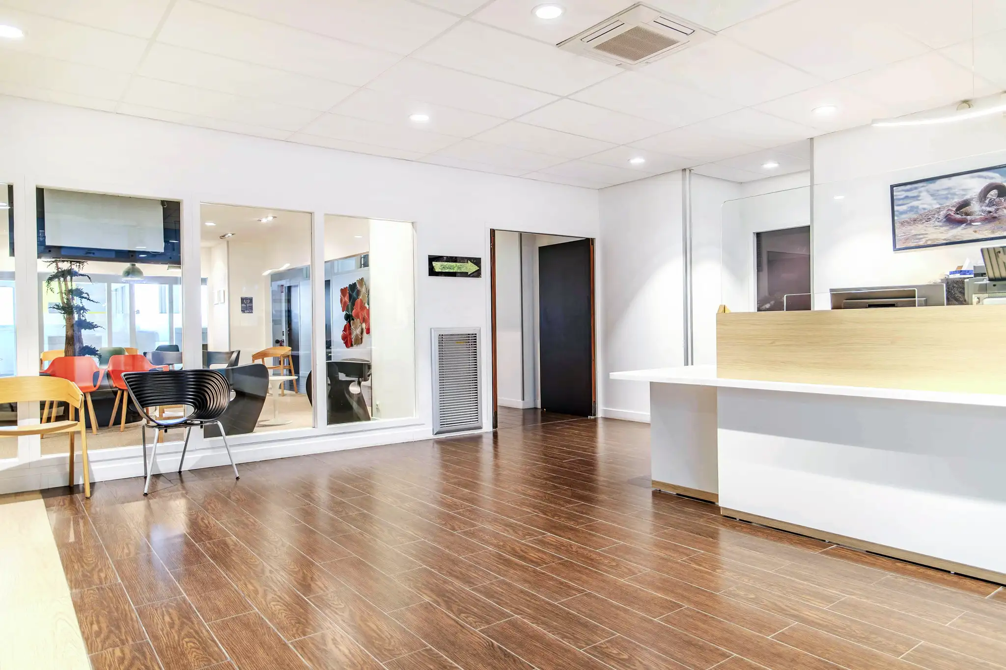 Cette zone stratégique bénéficie désormais d’une meilleure visibilité depuis l’entrée, de matériaux faciles d’entretien et d’un traitement acoustique adapté aux échanges confidentiels.